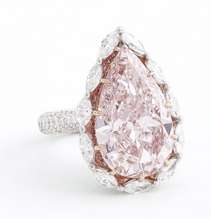 A 10.94-carat pear-shaped fancy light pink diamond, set into a ring and surrounded by marquise-shaped white diamonds, is expected to fetch between $1.9 million and $2.3 million.