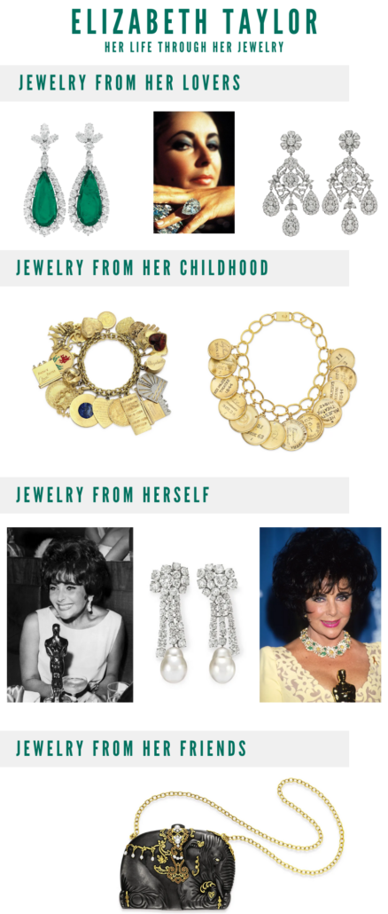 For years, Elizabeth Taylor has been regarded as having the most impressive private jewelry collection in America. Many lovers and her personal fame added to her collection which grew to be as glamorous as she was. Her private collection was auctioned off after her death, featuring some notable pieces.